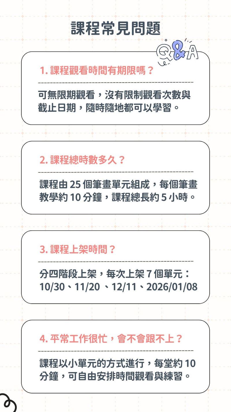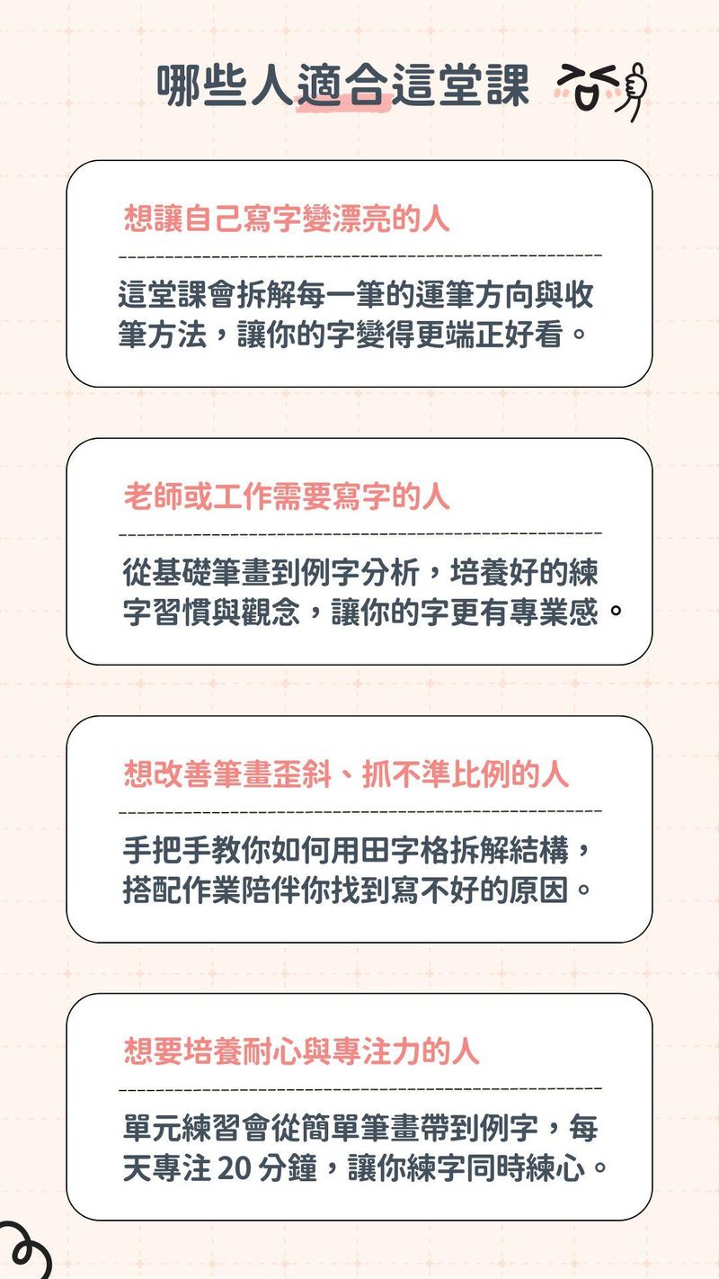 📢 現在加入課程,從每天 10 分鐘練習開始,寫出筆畫穩定、結構好看的字。